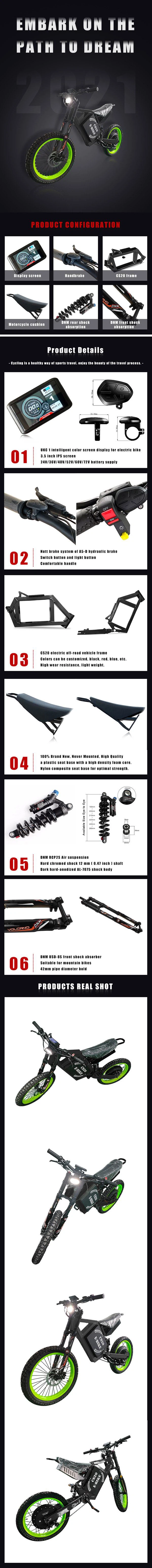 The lack of engine vibration means that the control surfaces on the motorcycle can be solid-mounted, increasing road feel and riding feedback. Adjustable seat height can accommodate both teens and adults. 72v 12000w ebike has built-in headlights good for nighttime riding and brake regen to further conserve or stretch battery power. What's more, the ebike has an extremely flexible and lightweight, so it's convenient to place the ebike at any place.